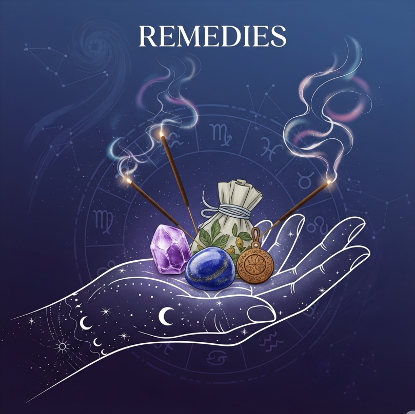 Suggests powerful parihara (remedies) to balance karma.