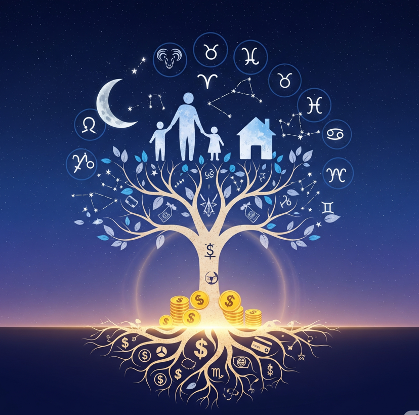 Reveals ancestral wealth and fortune.