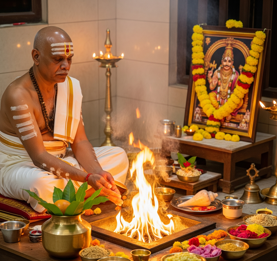 In Nadi Astrology, remedies play a vital role in reducing the effects of past-life karma and present-life obstacles. The sages not only revealed destiny but also prescribed parihara (remedies) to restore peace, prosperity, and health. Among these remedies, Homam (sacred fire ritual) holds great significance and brings blessings.